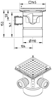 BLÜCHER Domestic-150 afløb for beton- og klinkegulve, med sideindløb og lodret Ø110mm udløb, uden membranflange. Ønskes vandlås kan Blücher indbygningsvandlås tilkøbes, se relaterede produkter.  |