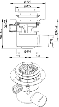 BLÜCHER Domestic-150 justerbar afløb for vinylgulve, med sideindløb og vandret Ø75mm udløb. Ønskes vandlås kan Blücher indbygningsvandlås tilkøbes, se relaterede produkter.  |