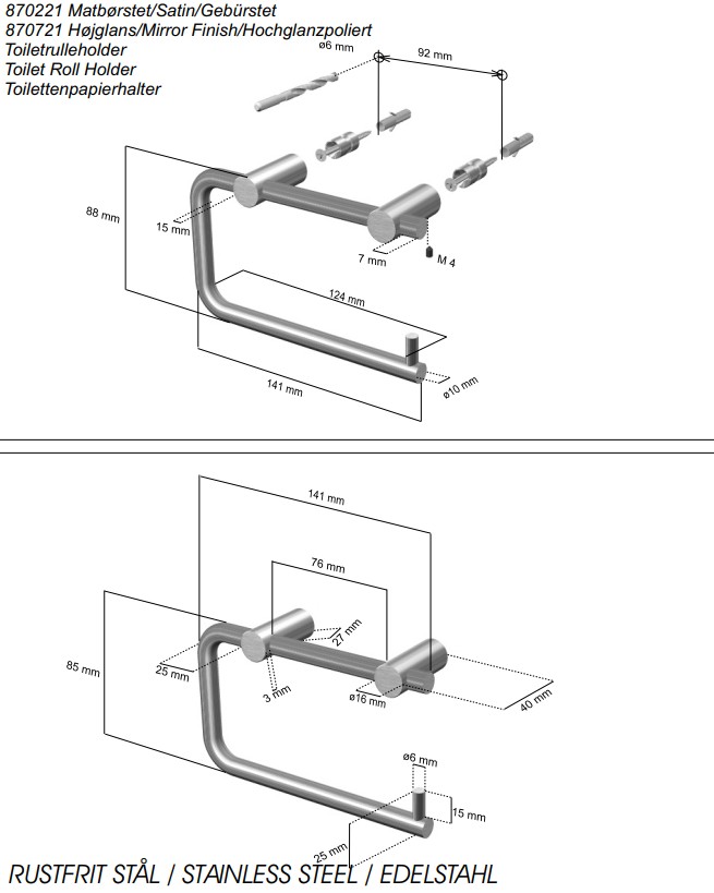 Cool Line toiletpapirholder - Poleret stål Solid toiletrulleholder i klassisk design fra Cool Line. Her får du et holdbart produkt i et slidstærkt materiale og med nem montering. Specifikationer:
