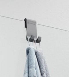 Krog grå silikone (2 stk.) Sæt med 2 dobbeltkroge. Krogene hænges på kanten af glasset indvendigt eller udvendigt og er praktiske til håndklæder, børster, svampe etc. Mål: H 6 x B 4 x D 1,5 cm Farve: Lys grå  |