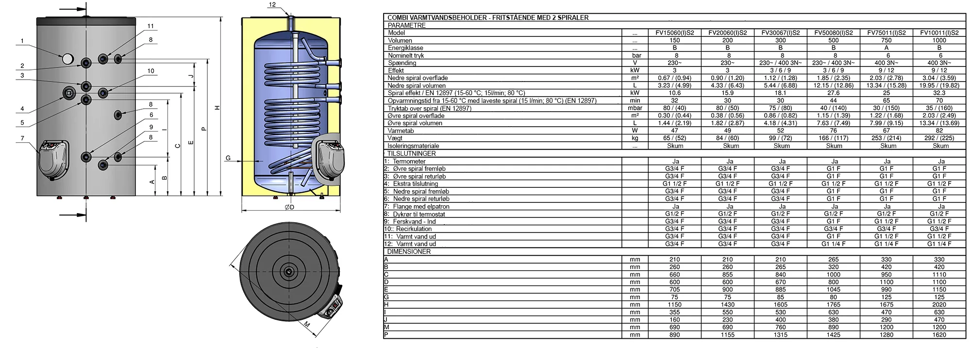 Beholderen har 2 spiraler som gør det muligt at kombinere varmekilder. Den øverste spiral er til pillefyr eller en anden kedel. Den nederste spiral er til solvarme. Det giver gode muligheder for altid at udnytte den mest optimale og billigste varmekilde, uanset sæson.