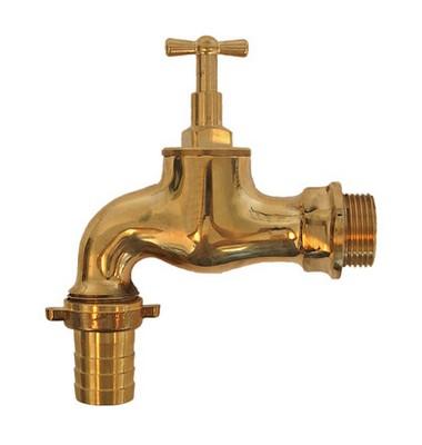 Aftapningsventil 3/4" m/ T-greb i poleret messing og m/ slangestuds.