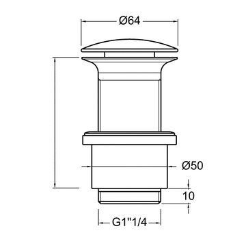 Johansen 1.1/4" push-up bundventil med overløb cylinder krom  |