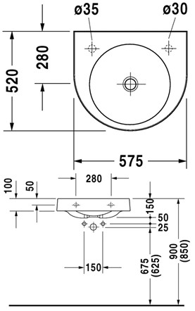 Duravit Architec 58 håndvask t/væg - Uden overløb