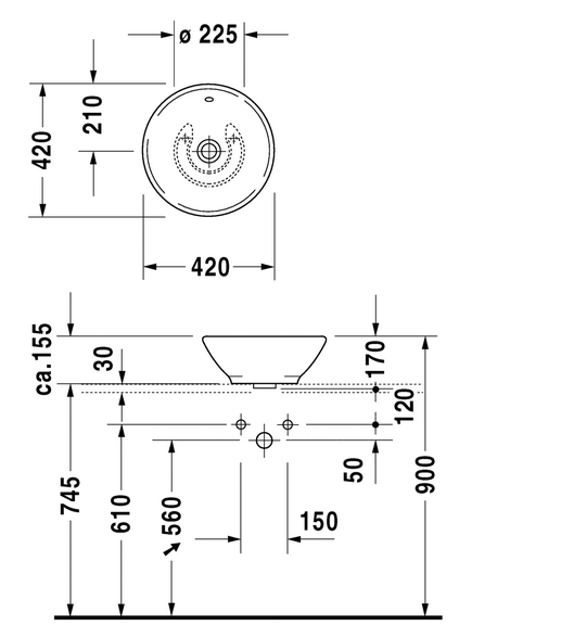 Duravit Bacino Ø42 fritstående bowlevask - Uden hanehul Duravit Bacino er en klassisk bowlevask i form af en rund skål, som placeres på en bordplade. Den enkle form er utroligt elegant og sammensættes nemt med badeværelsestilbehør efter eget ønske.