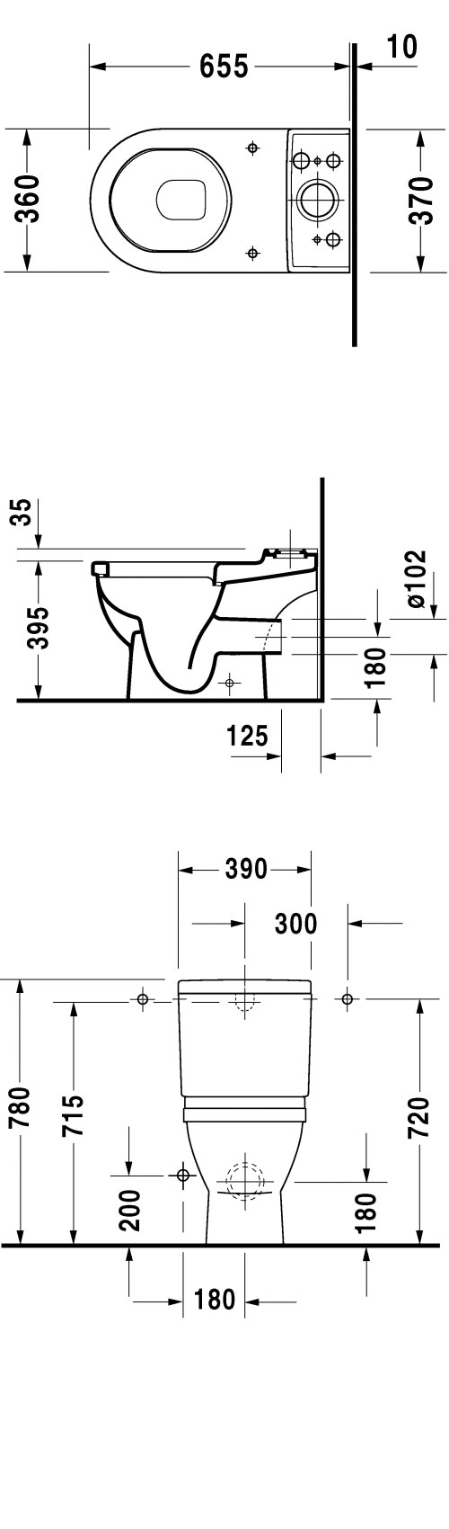 Duravit Starck 3 toilet gulvstående med P-lås - 012609 00 00. Inkl. fastgørelse. Excl. cisterne og sæde. (se relaterede varer nedenfor).