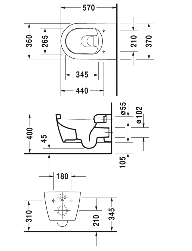 Duravit Me by Starck væghængt toilet m/wondergliss ME by Starck Toilet vægmonteret Nordisk variant, inkl. Durafix, 4,5 L, Design by Philippe Starck Inklusiv Durafix2 for skjult montering Denne model er med wondergliss, et ekstra lag glassur der gør skålen mere  |