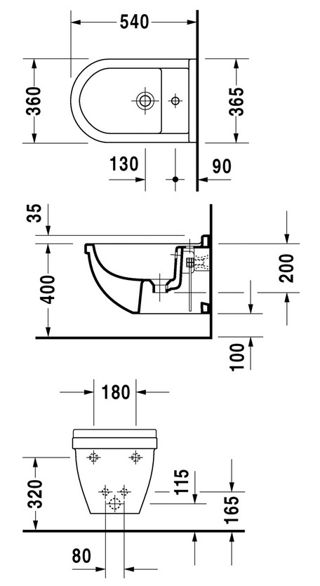 Starck 3 Bidet vægmonteret med overløb, med platform til hanehul, inkl. Durafix, Design by Philippe Starck
