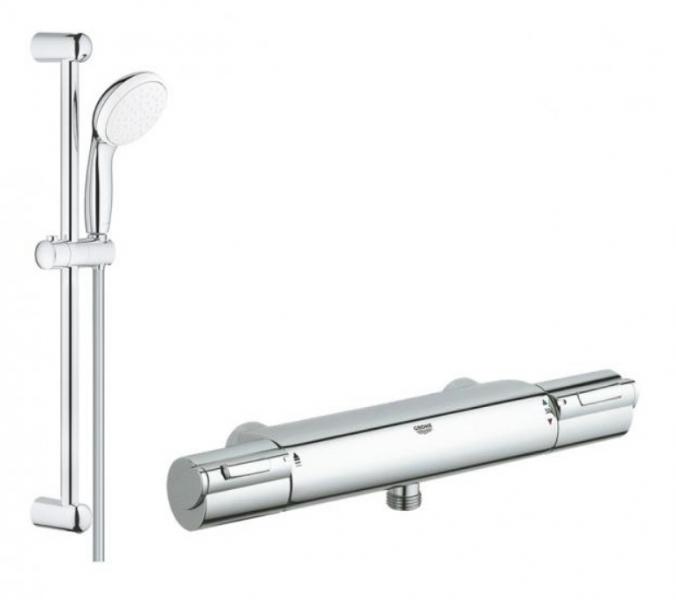 Denne prisbillige brusepakke er ikke kun funktionel, den er også miljøvenlig og god for din pengepung. Her er nemlig indbygget vandsparefunktion og EcoButton, som sørger for at dit vandforbrug forbliver fornuftigt og ikke bliver unødigt højt. Med Grohe's teknologi forbliver ydeevnen skarp, så du er sikret et brusebad af høj kvalitet og stor nydelse. Her får du en løsning, der kombinerer Grohtherm termostatarmaturet og Grohe brusesæt med håndbruser, bruserslange og -stang. Et enkel og utroligt funktionel løsning, der stilmæssigt passer ind på alle badeværelser. Grohe Grohtherm temostatarmatur specifikationer: