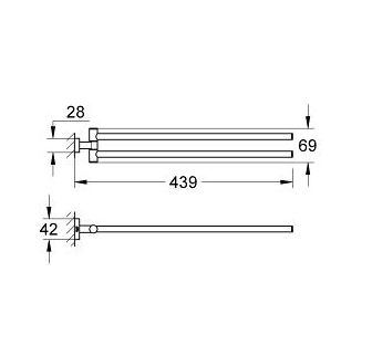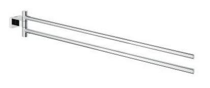 Grohe Essentials Cube håndklædeholder Praktisk svingbar håndklædeholder fra Grohe's Essential Cube-serie. Denne serie af badeværelsestilbehør kendetegnes ved den firkantede vægrosette, som også findes på resten af tilbehøret. Denne svingbare håndklædestang er praktisk på ethvert badeværelse, hvor der skal være plads til at lade håndklædet tørre i fri luft. Håndklædestangen kan placeres, så den kan svinges ind til væggen og dermed ikke optage plads i rummet, når den ikke er i brug. Håndklædeholderen er belagt med Grohe's holdbare og slidstærke krombelægning, som sikrer at den vil holde sig blank og flot i mange år. Specifikationer: