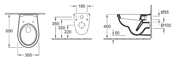 Gustavsberg 7G65 Saval væghængt toilet 350x550mm, hvid. Excl. toiletsæde (se relaterede produkter nedenfor).  |