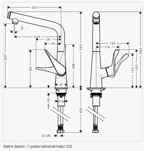 Hansgrohe Metris Select køkkenarmatur m/select knap - Krom OBS: Varen er på lager - både til afhentning og dag-til-dag levering. Produktkendetegn