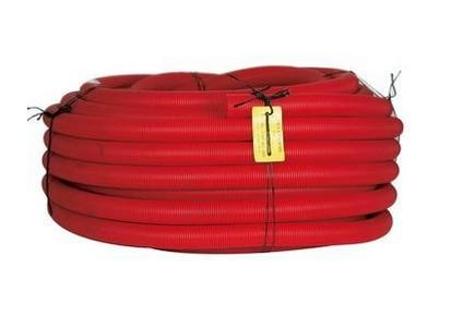 Hekaplast rød, indvendig glat og udvendig korrugeret PEH-rør, anvendes som trækrør til kabler primært nedgravet i jord. Leveres med træksnor og muffe.