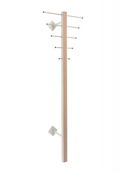 Hoigaard ST-1 stumtjener - Eg/olie Hoigaards ikoniske stumtjener monteres på væggen og er en stilfuld opbevaringsmulighed til overtøjet. Stumtjeneren monteres med to arme på væggen, men disse er nærmest usynlige, når stumtjeneren først er monteret. Overtøj og tasker kan hænges på 5 knager på hver side. Ikke nok med at stumtjeneren er praktisk, så er den også en spændende, designmæssig tilføjelse - der naturligvis går godt hånd-i-hånd med resten af Hoigaards sortiment. Stumtjeneren er lavet af en kombination af massivt træ og eloxeret aluminium, hvor knagerne/stængerne er af rustfrit stål. Specifikationer:
