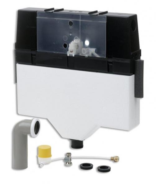 IFØ cisterner, af plast, til indbygning; med komplet svømmerventil og skyllerørsbøjning med O-ringe. Vandtilgang fra siden til omløber med rørgevind 1/2. Uden trykknap. Skyllemængde 2-4 liter*. VA-godkendte