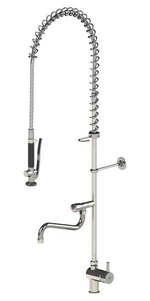 Storkøkkenarmatur i krom med montering i bordplade i Ø30mm hul. Armaturet er udstyret med et greb samt keramisk omskifter mellem tuden og håndtaget. Kontraventiler medfølger.
