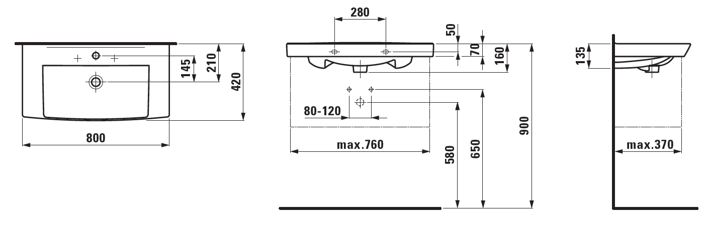 Laufen Pro-N 80 håndvask t/væg eller møbel - 1 hanehul