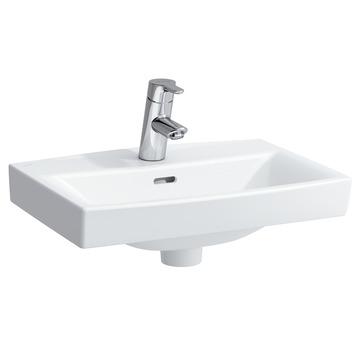 Laufen Pro-N 60 håndvask t/væg eller møbel - 1 hanehul Designeren bag Laufen Pro, Antti Ylisassi fra schweiziske Process Design, har skabt en badeværelsesserie som har optimeret den keramiske fremstillingsproces. På denne måde har han bevist at minimalistiske former, høj kvalitet og høj funktionalitet ikke nødvendigvis behøver at være dyr. Laufen Pro-n er et moderne eksempel på at alle har ret til godt design. Kan monteres på møbel, bolte eller bæringer (se relaterede varer nedenfor). Specifikationer:
