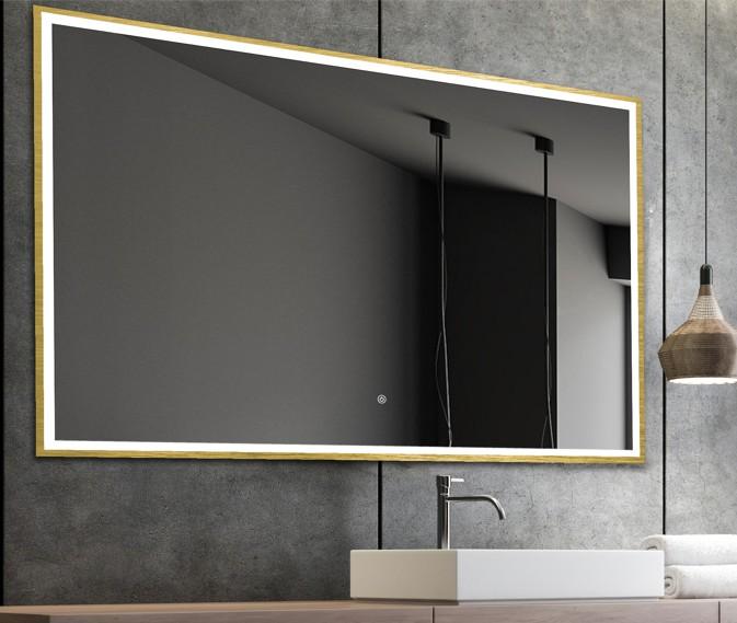 Tanja firkantet spejl m/messing ramme, integreret LED lys og touch - 80 cm