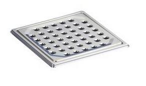 Syrefast rustfri rist og ramme. Rammen skal altid have forbindelse med gulvafløbet og fuges tæt - evt. med Foscoc Secomastic, DaMastic 551 eller Bostik 2640. Produktet er mønsterbeskyttet. BRUG ALDRIG SILICONE.  |
