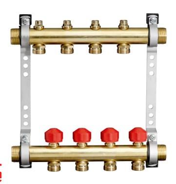 Roth gulvvarmefordeler består af en kraftig korrosionsbestandig messingprofil. Det fabriksmonteret ophængningsbeslag forskyder nederste fordeler (returen) med 32 mm i forhold til øverste fordeler (fremløbet), dette sikrer at gulvvarmerørene kan monteres problemfrit. Gulvvarmefordeleren leveres med 1" udvendigt gevind i begge ender, så tilslutning til fødeledninger eller shunte kan ske valgfrit.
