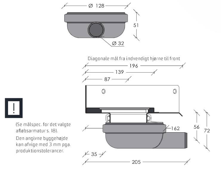 Unidrain 2311 afløbshus med vandret udløb Ø32 mm uden lugtspærre Passer til hjørnearmatur 2011.0200
