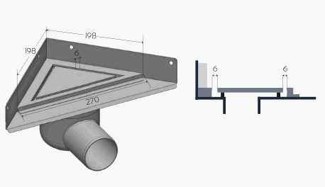 HighLine Panel til hjørne er udført i massivt, børstet, rustfrit stål. Sættet består af Panel, ramme og forhøjersæt, der monteres under Panelet afhængig af tykkelsen på gulvflisen. Tre uddybninger i armaturet sørger for at Panelet står fast. For komlet afløb skal du bruge et 2011 hjørneafløbsarmatur og et udløbshus, se relaterede varer.  |