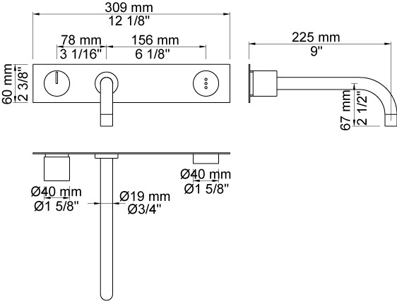Vola Indbygningsblander til berøringsfri betjening Dækplade Krom 16 ½''RG  |
