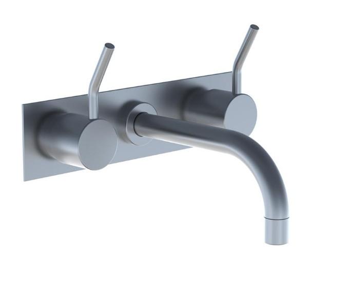 Vola To-grebsblander med afgangsmuffe i midten Fast udløb, 160 mm, ø19 mm Mellemlangt 60 mm Dækplade Krom 16 ½''RG/PEX |